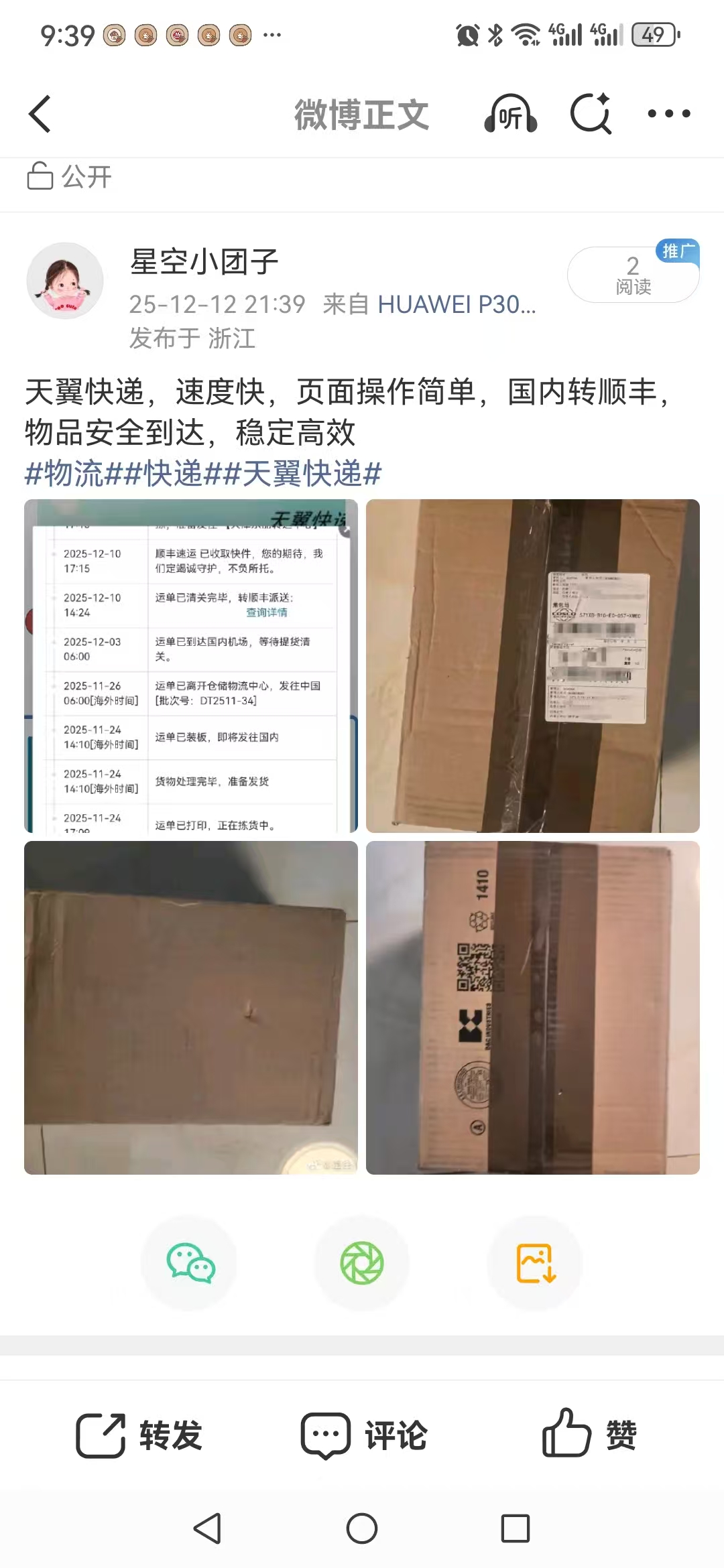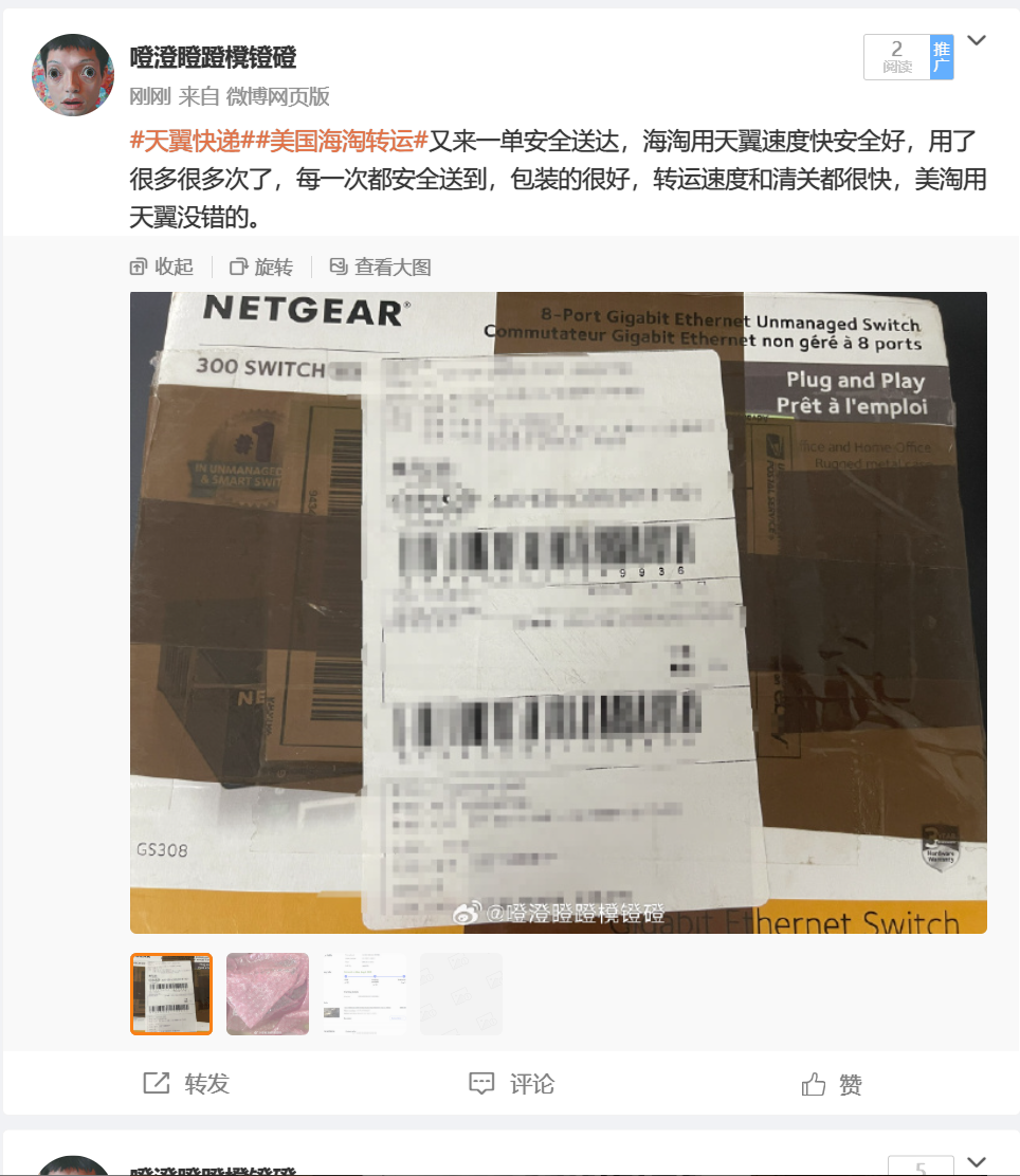 • 天翼快递速度快,服务好